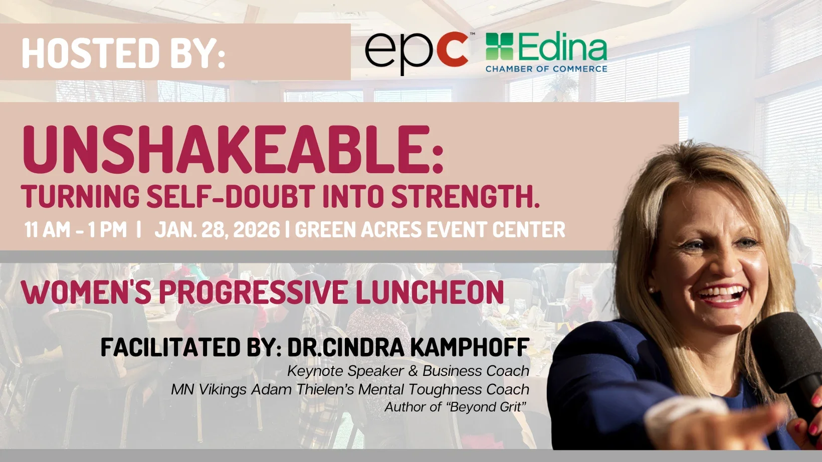 Start the new year with renewed focus, confidence, and courage. Join us for an inspiring session with Dr. Cindra Kamphoff, nationally recognized high-performance coach, speaker, and author.
