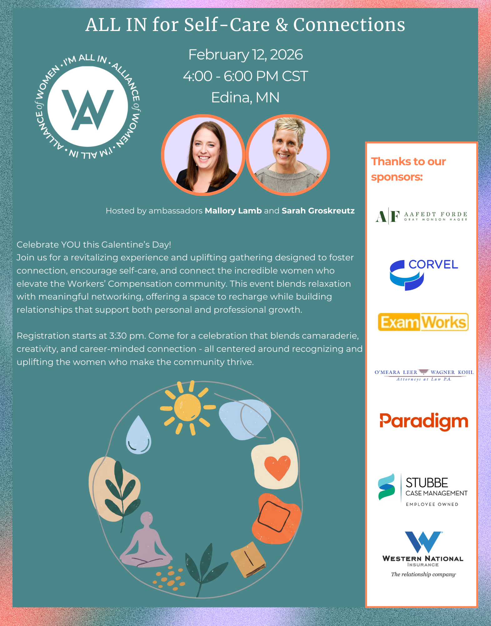 Join us for a revitalizing experience and uplifting gathering designed to foster connection, encourage self-care, and connect the incredible women who elevate the Workers’ Compensation community. This event blends relaxation with meaningful networking, offering a space to recharge while building relationships that support both personal and professional growth.