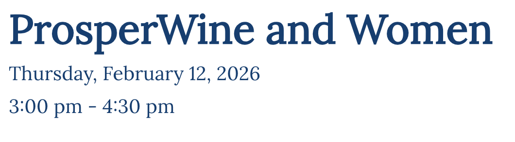 Join us for ProsperWine and Women to connect with amazing businesswomen. If you are a working mom, a woman in business or a women business owner, you do not want to miss this networking happy hour! We will chat over a glass of wine on topics such as work/life balance, business growth, marketing, finances and so much more.