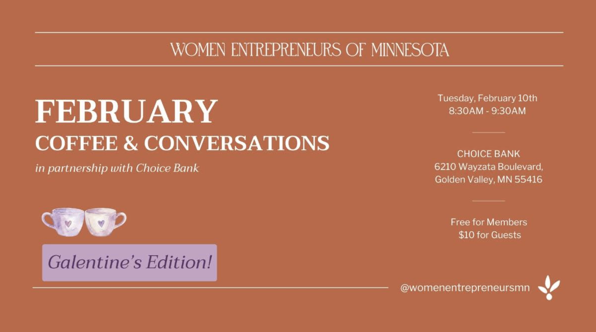 You’re invited! Galentine’s Edition! Coffee & Conversations is a networking event for Members and non-members of Women Entrepreneurs of Minnesota.