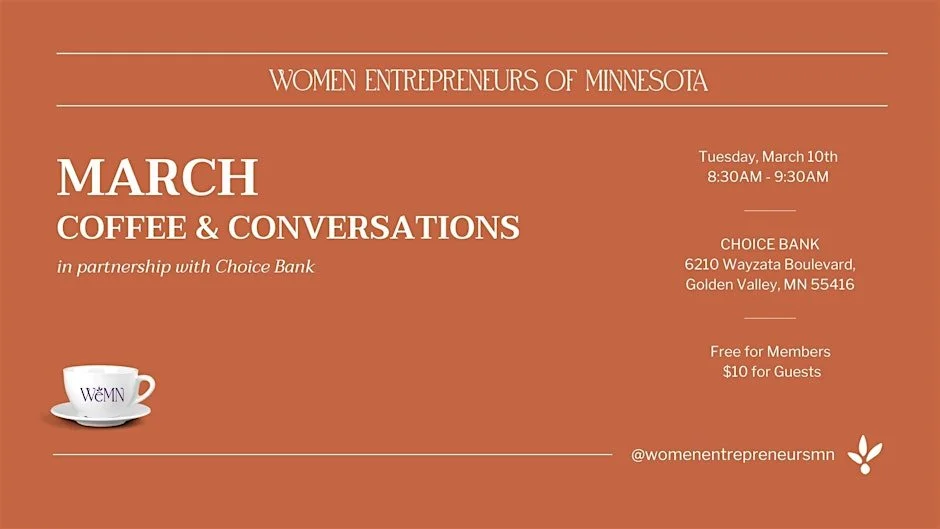 You’re invited! Coffee & Conversations is a networking event for members and non-members of Women Entrepreneurs of Minnesota.